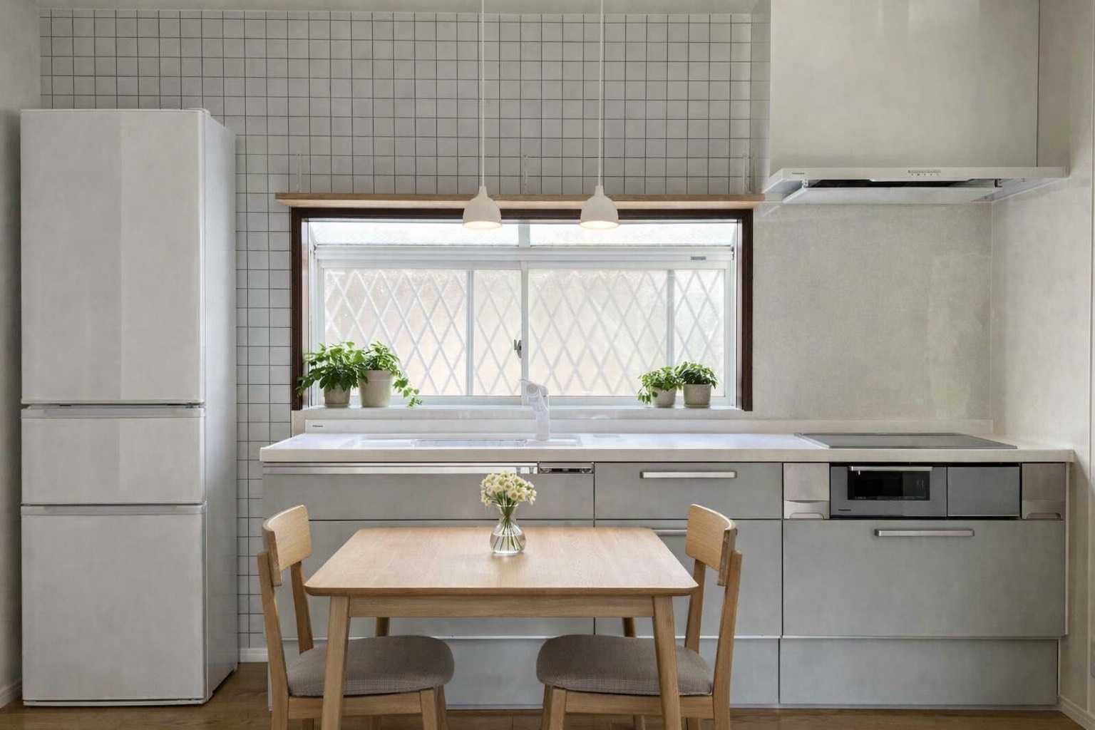 キッチンはペールグリーンを基調に、タイル調のクロスを合わせました。このカラーはご夫婦のお気に入りの家具や小物ともよく調和し、キッチン全体に明るさと爽やかさをもたらしています。ペールグリーンの柔らかな色味が、落ち着いた空間を演出し、料理をする時間もより快適なものになります。