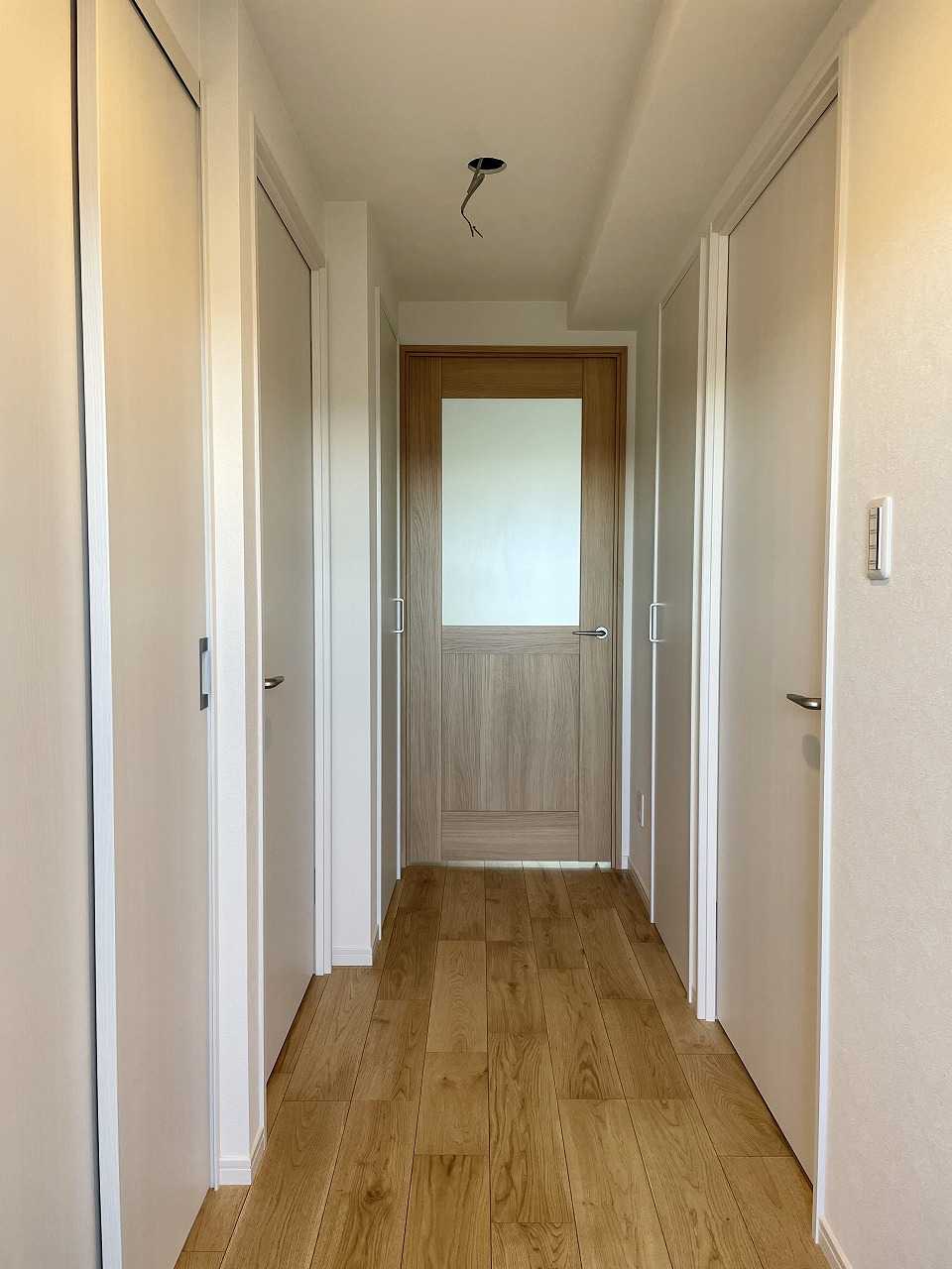 ナチュラルな木目が、白い壁に柔らかなアクセントを加えています。シンプルながらも温かみのある空間に仕上がり、リラックスできる住まいとなりました。
