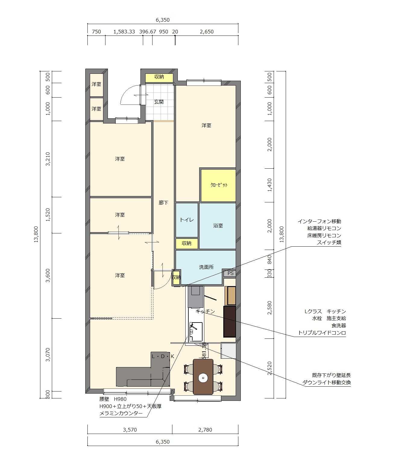 壁付けキッチンから対面キッチンへ